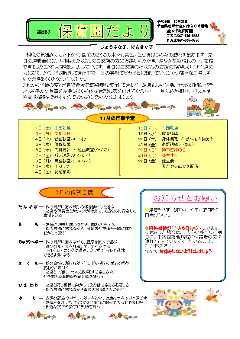 保育園だより 2025年11月号