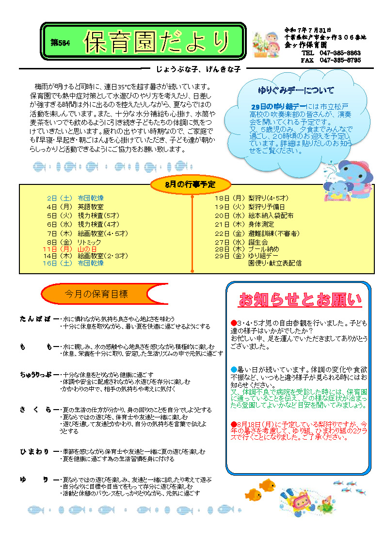 保育園だより 2025年8月号のダウンロードはこちら